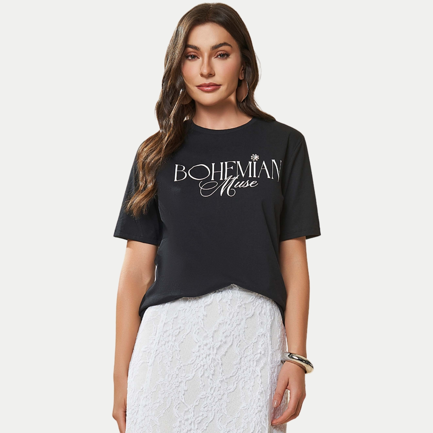 BLUSA DOCE TRAMA MANGA CURTA TSHIRT PRETA ALGODÃO SILKADA FEMININA ADULTO