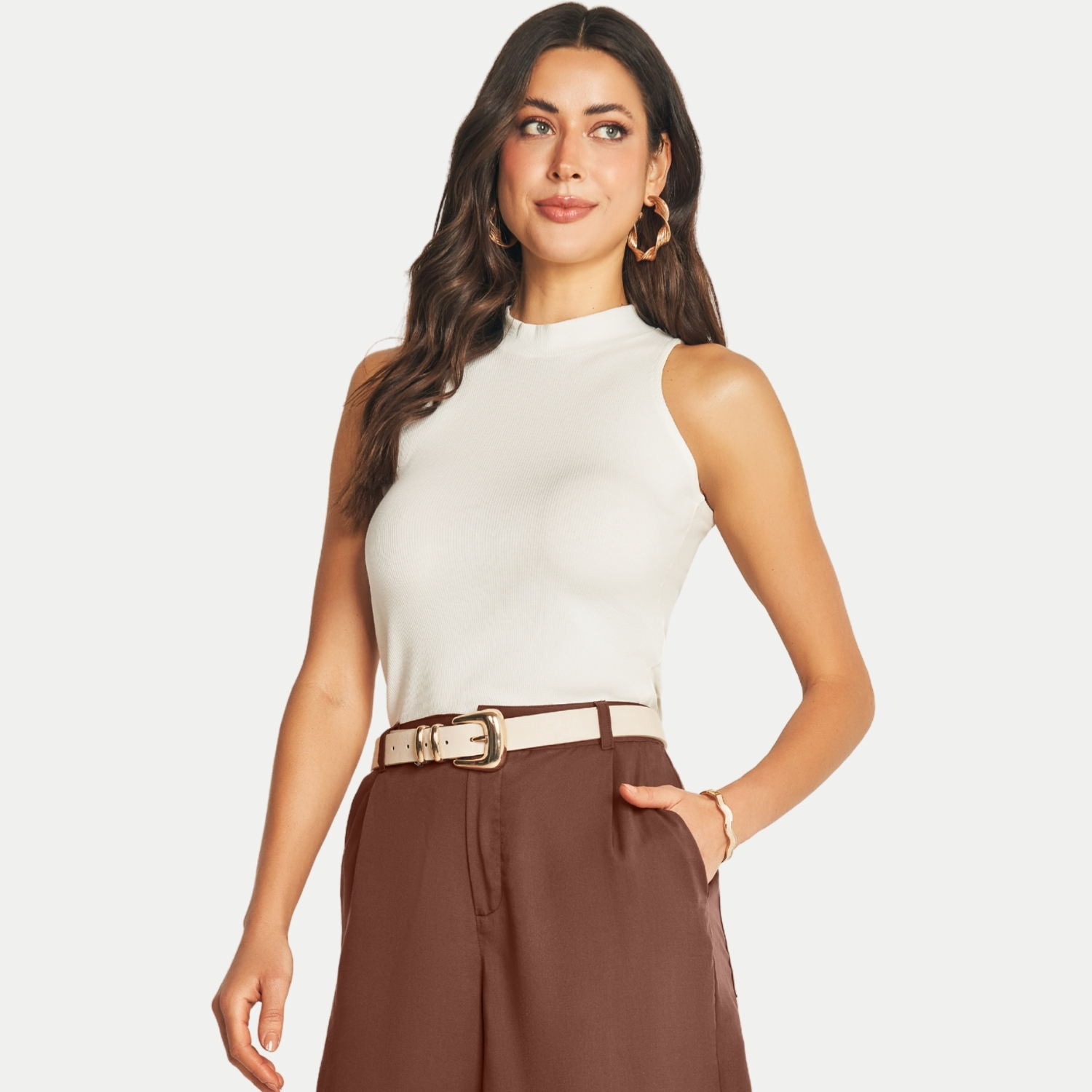 BLUSA DOCE TRAMA REGATA OFFWHITE DE MALHA CANELADA FEMININA ADULTO