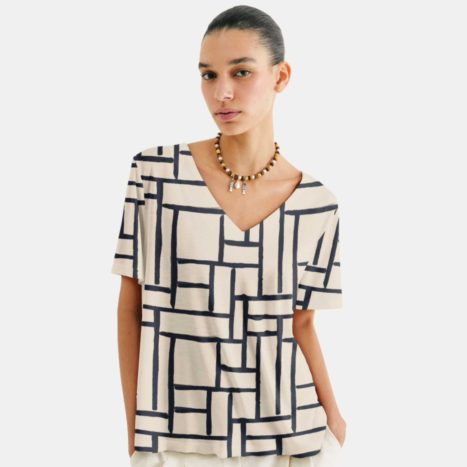 BLUSA HERING MANGA CURTA VISCOSE ESTAMPADA OFFWHITE FEMININO ADULTO