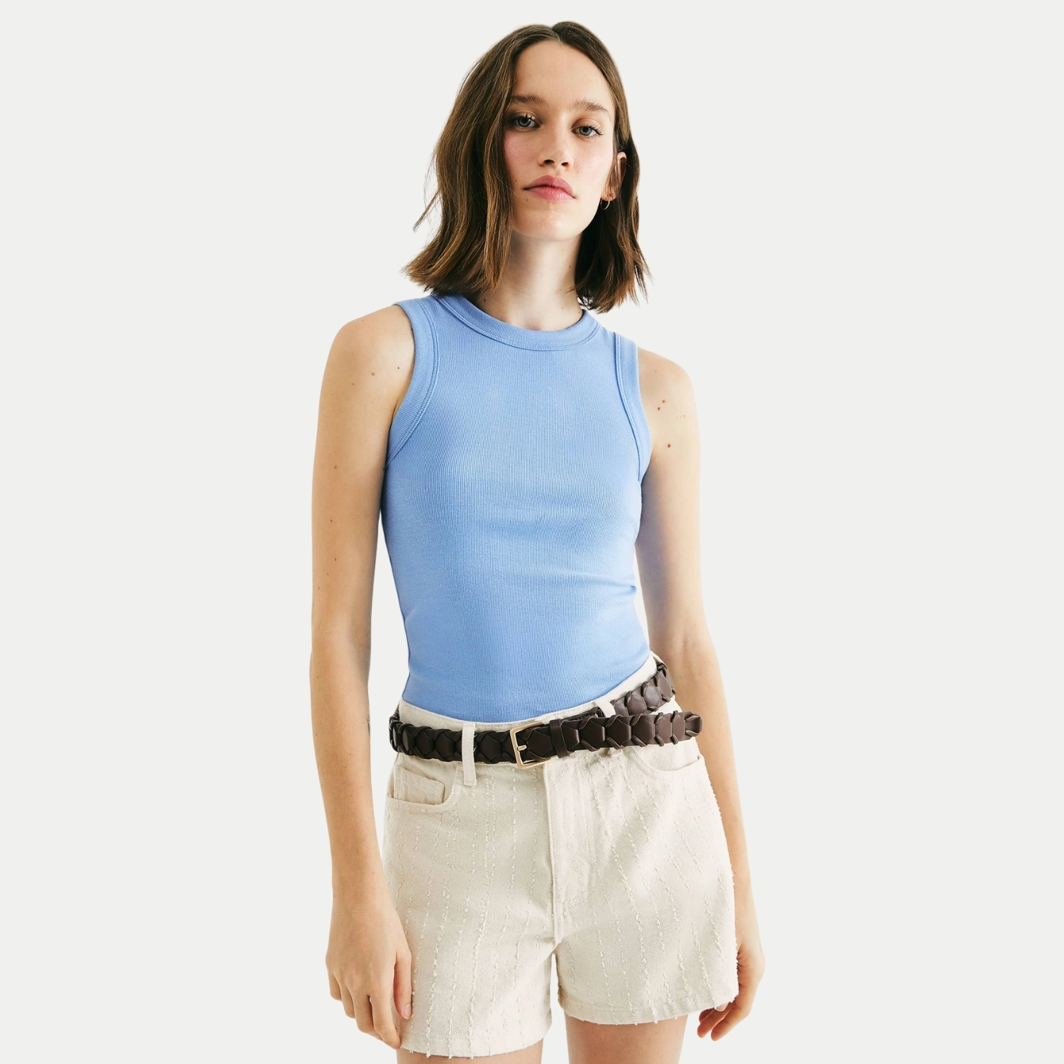 BLUSA HERING REGATA DE MALHA CANELADA AZUL FEMININA ADULTO