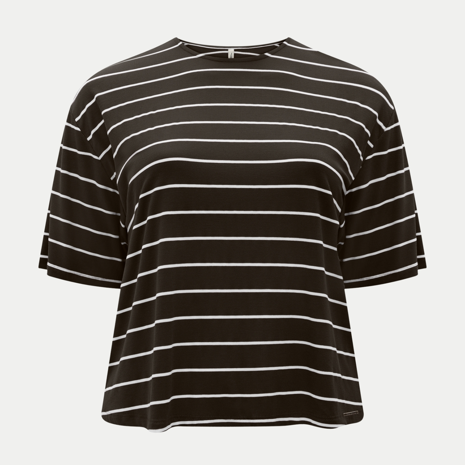 BLUSA LUNENDER MANGA CURTA MALHA CANELADA LISTRADA MARROM FEMININO ADULTO