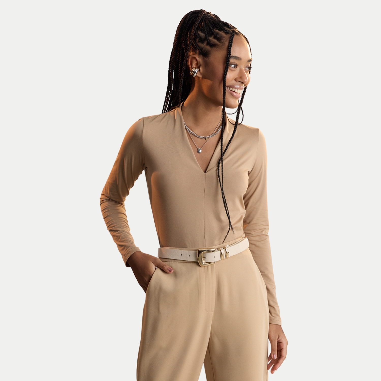 BLUSA LUNENDER MANGA LONGA MALHA BEGE FEMININO ADULTO