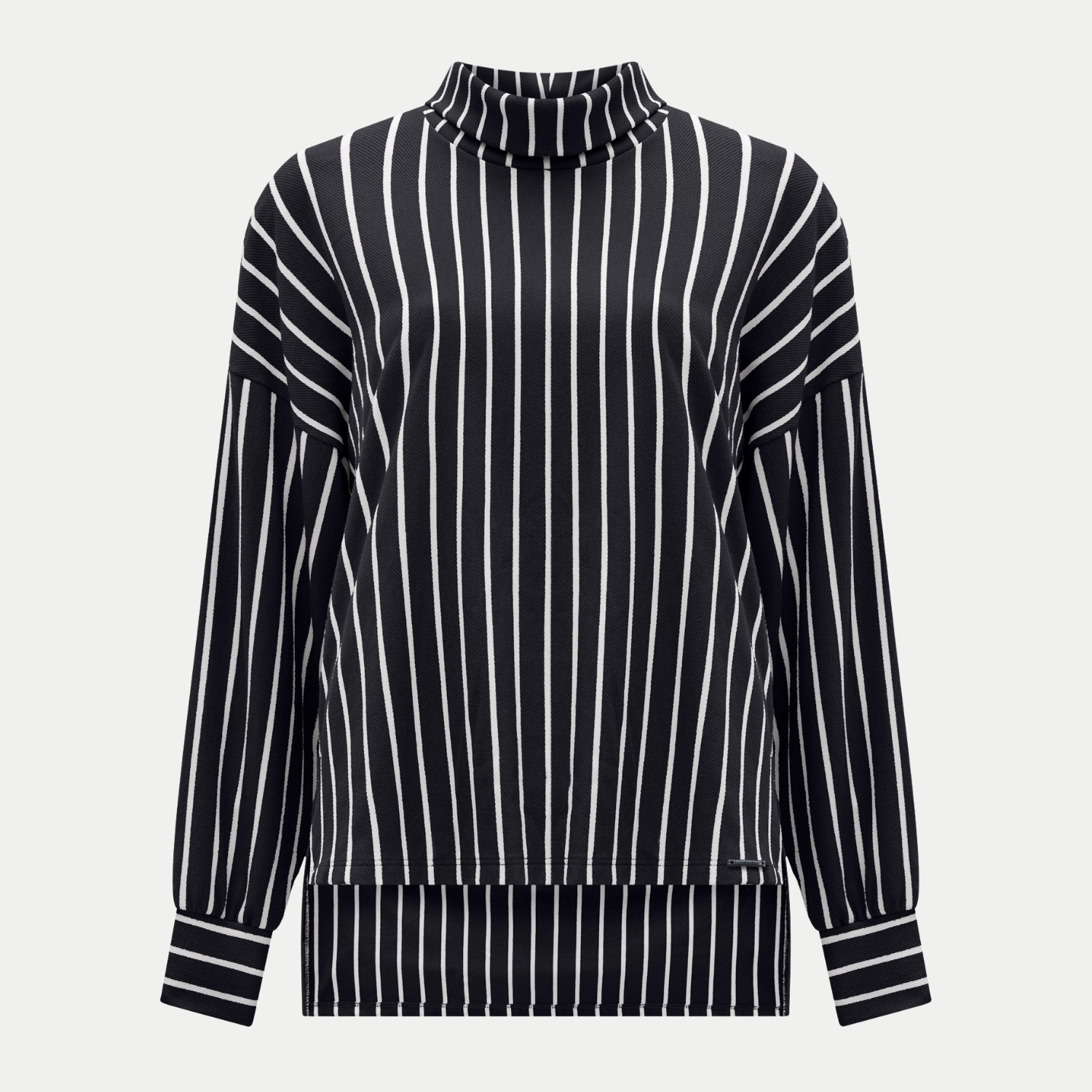 BLUSA LUNENDER MANGA LONGA MALHA LISTRADA GOLA ALTA PRETO FEMININO ADULTO