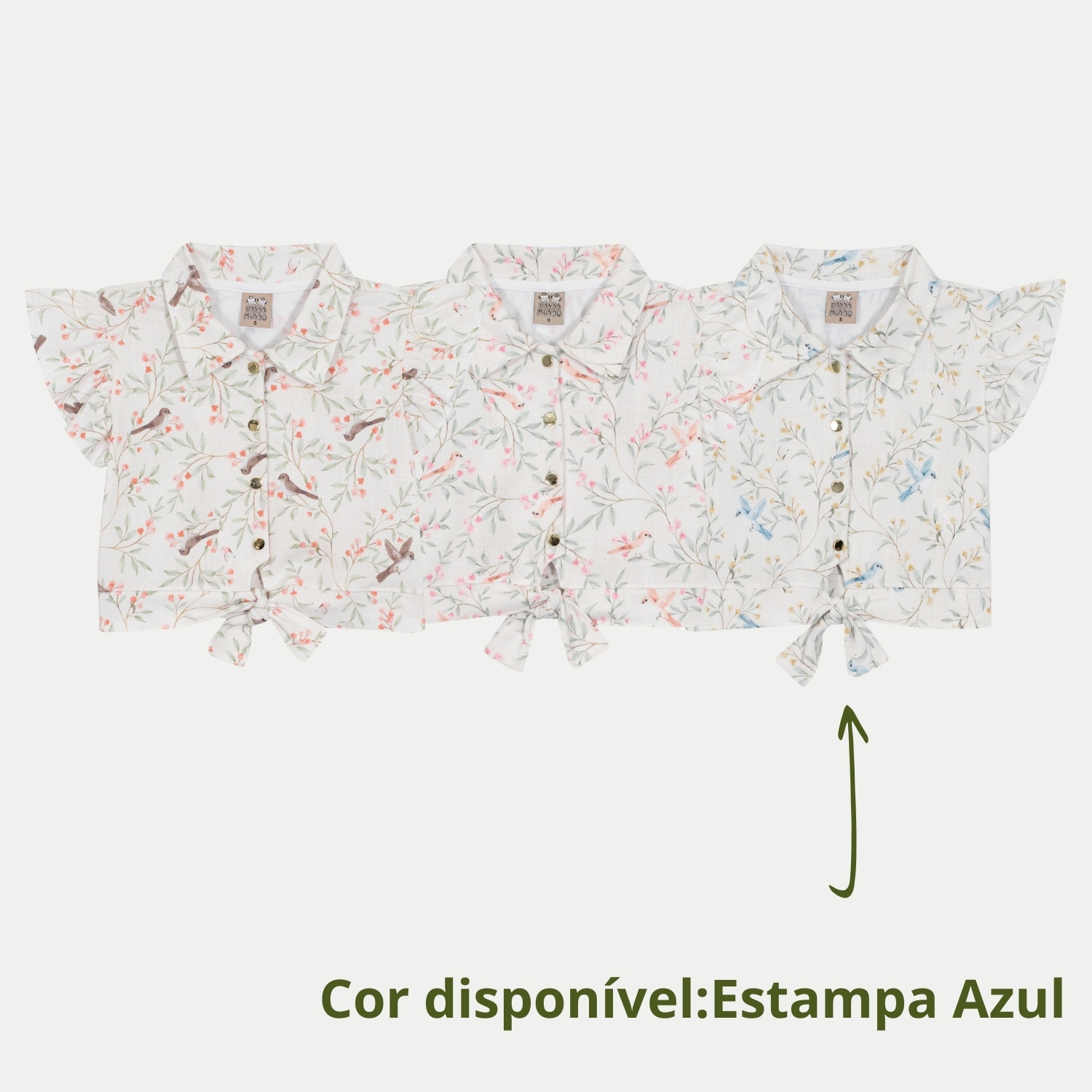 BLUSA RANDA MUNDU MANGA CURTA COTTON ESTAMPADA AZUL FEMININA INFANTIL
