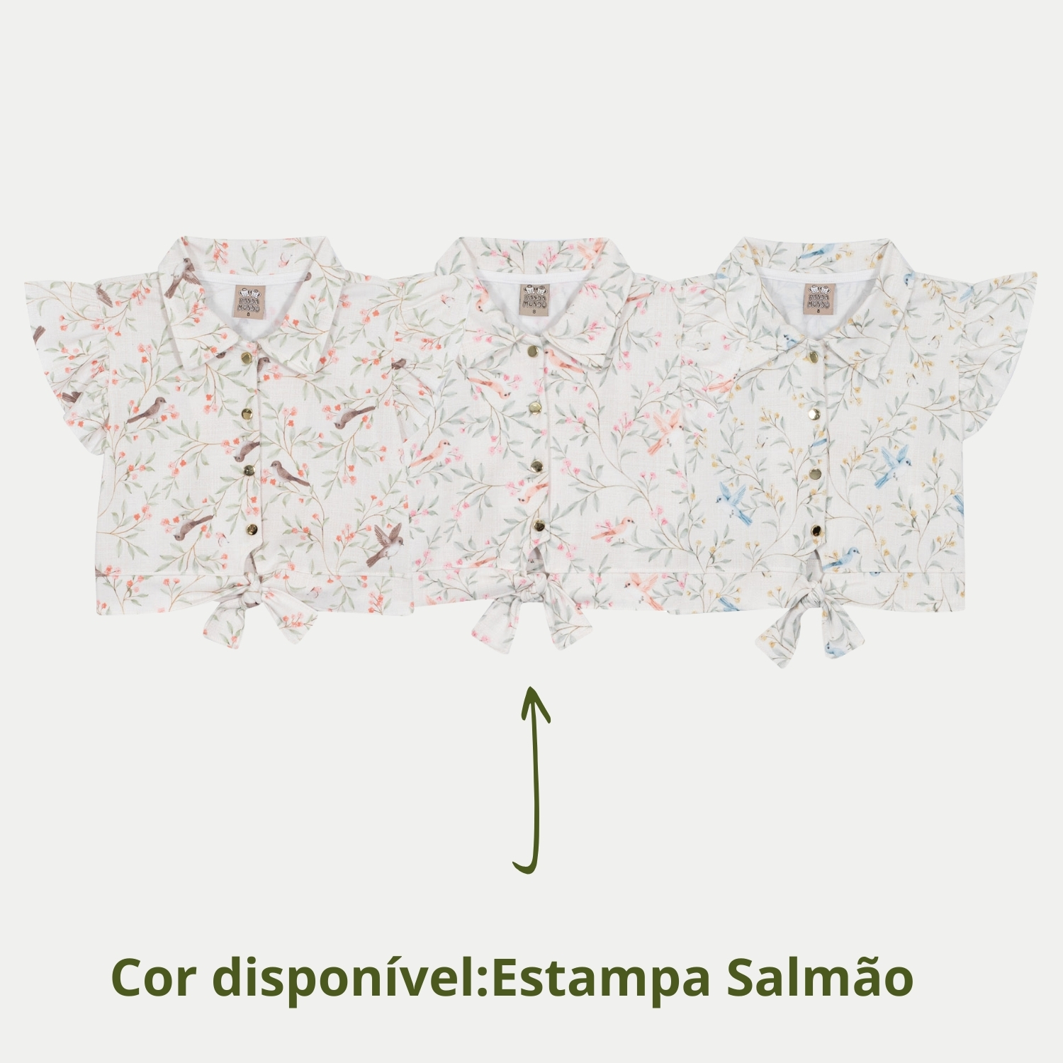 BLUSA RANDA MUNDU MANGA CURTA DE COTTON ESTAMPADA SALMÃO FEMININA INFANTIL