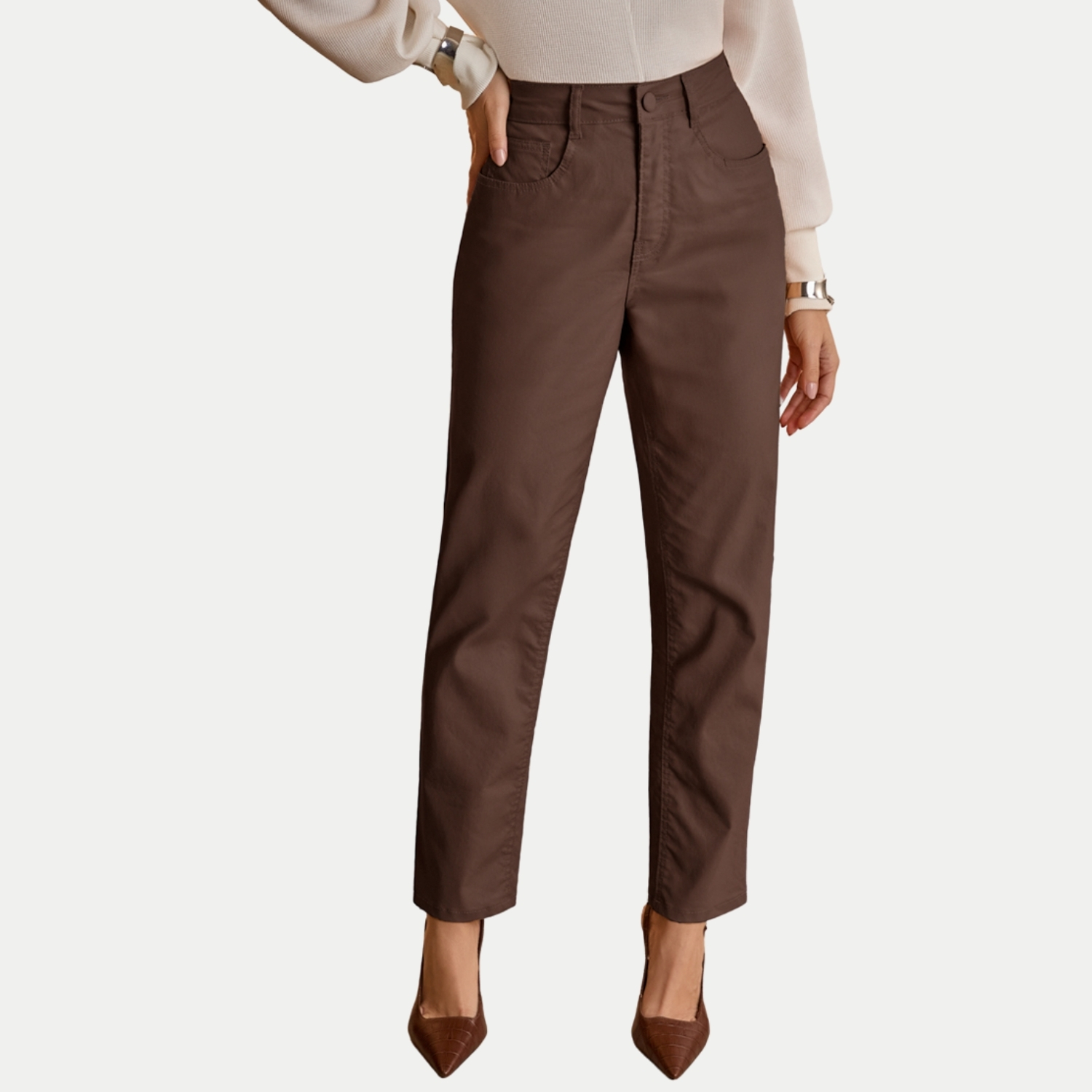 CALÇA LUNENDER BRIM RESINADO MOM MARROM FEMININO ADULTO