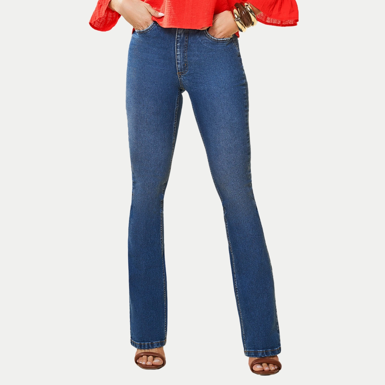 CALÇA DOCE TRAMA JEANS MÉDIO COM ELASTANO BOOTCUT FEMININA ADULTO