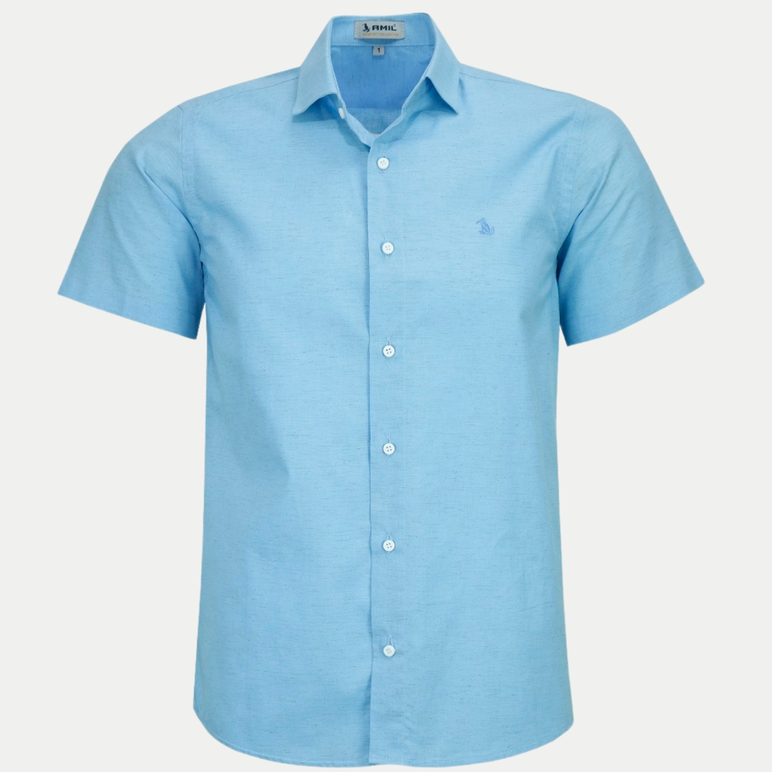 CAMISA AMIL MANGA CURTA COMFORT ALGODÃO SEM BOLSO AZUL MASCULINO ADULTO