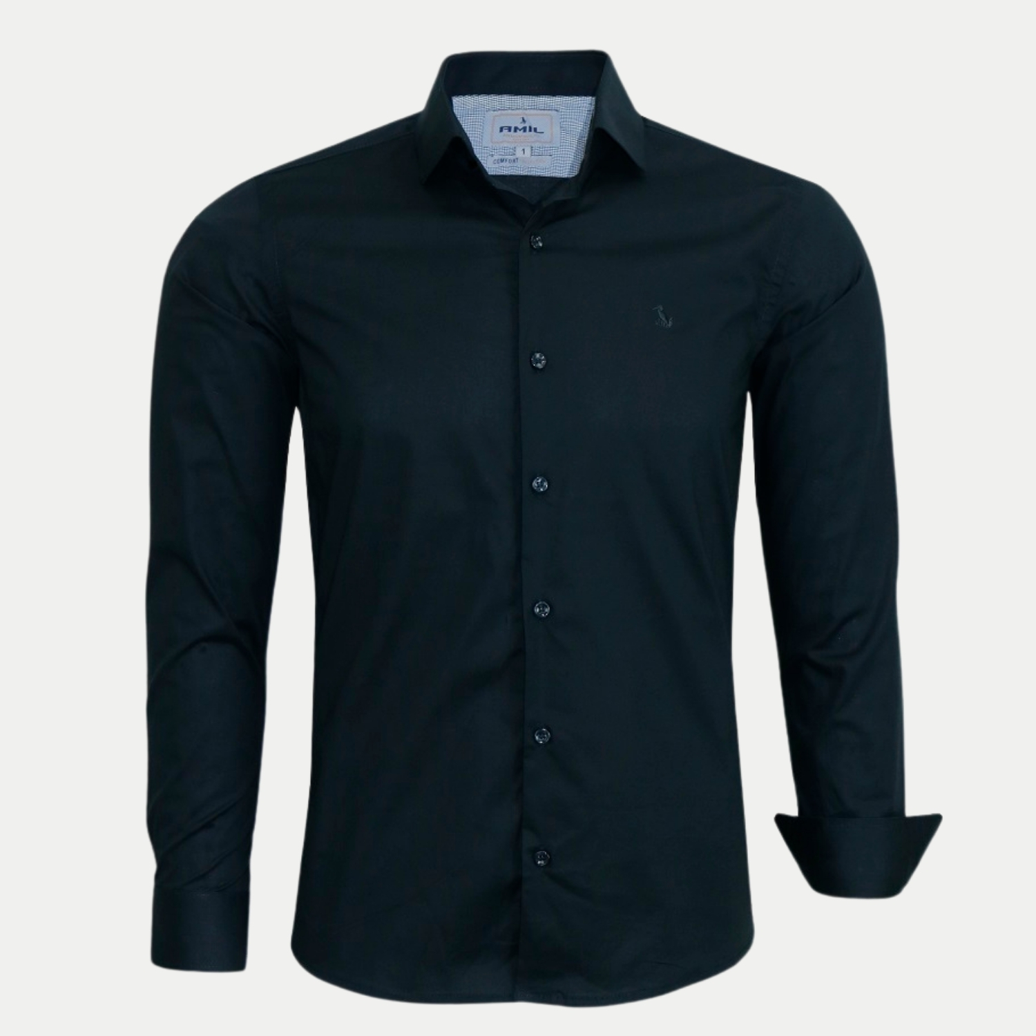 CAMISA AMIL MANGA LONGA COMFORT ALGODÃO COM ELASTANO LISA PRETO MASCULINO ADULTO