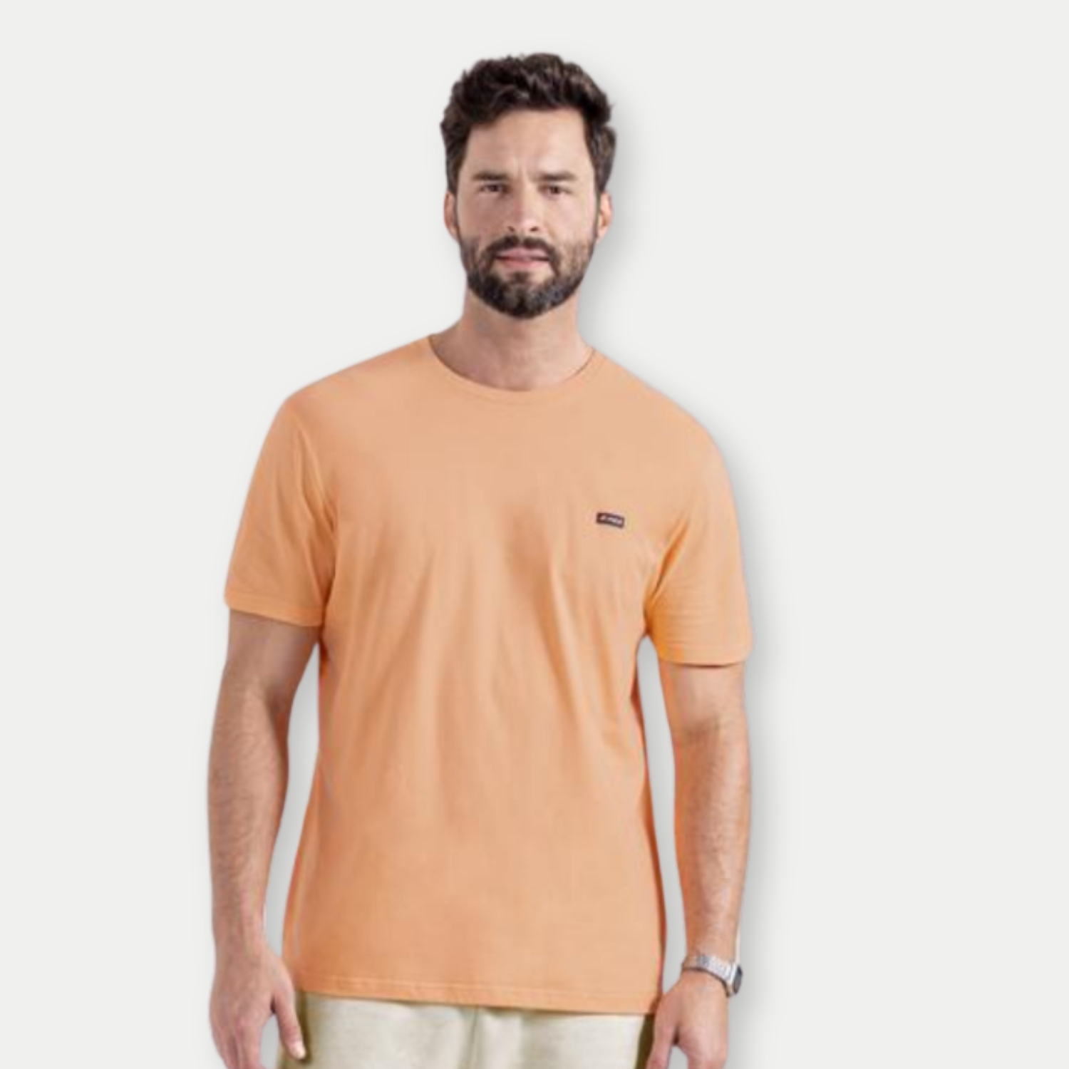CAMISETA FICO MANGA CURTA COMFORT LISA BORDADO GOLA REDONDA LARANJA MASCULINA ADULTO