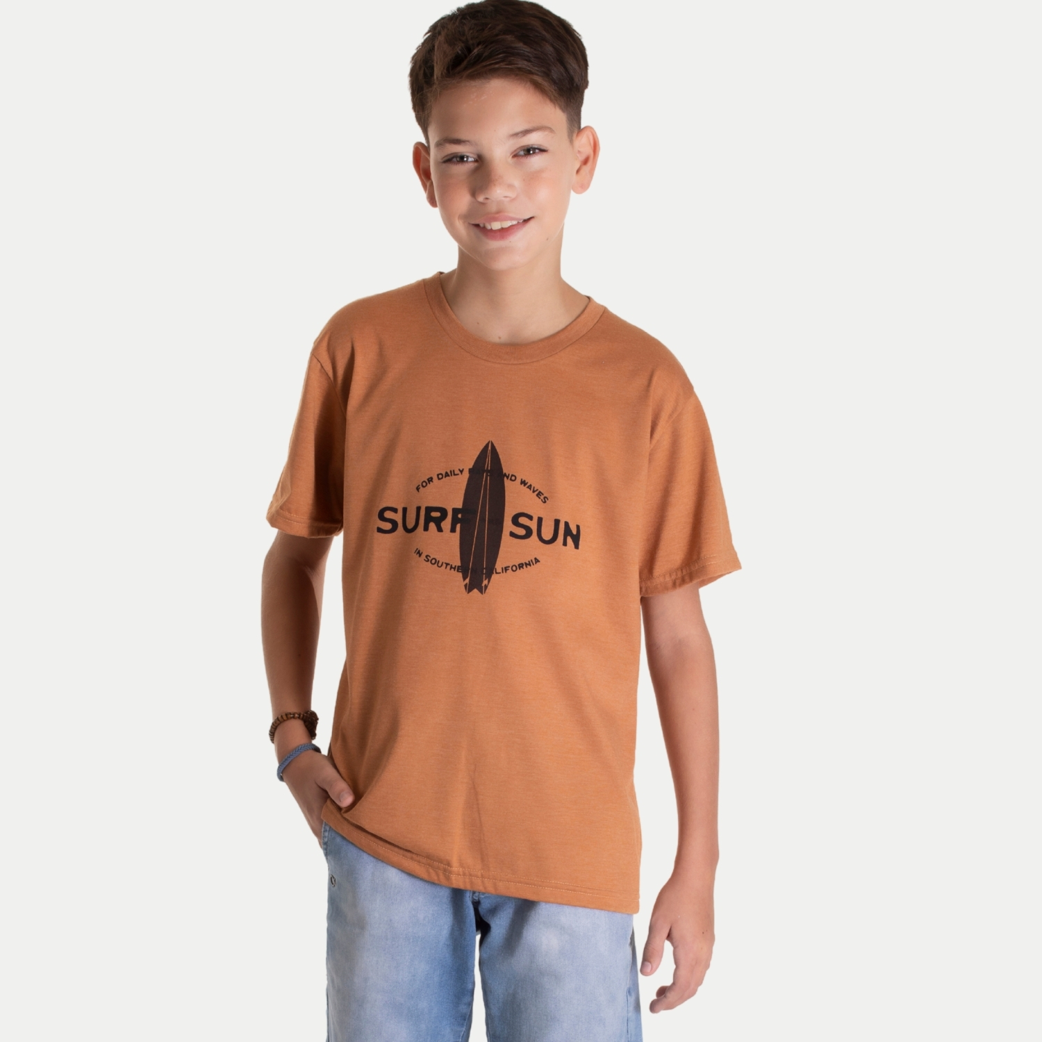 CAMISETA RANDA MUNDU MANGA CURTA COMFORT ALGODÃO SILKADA MARROM MASCULINA INFANTIL