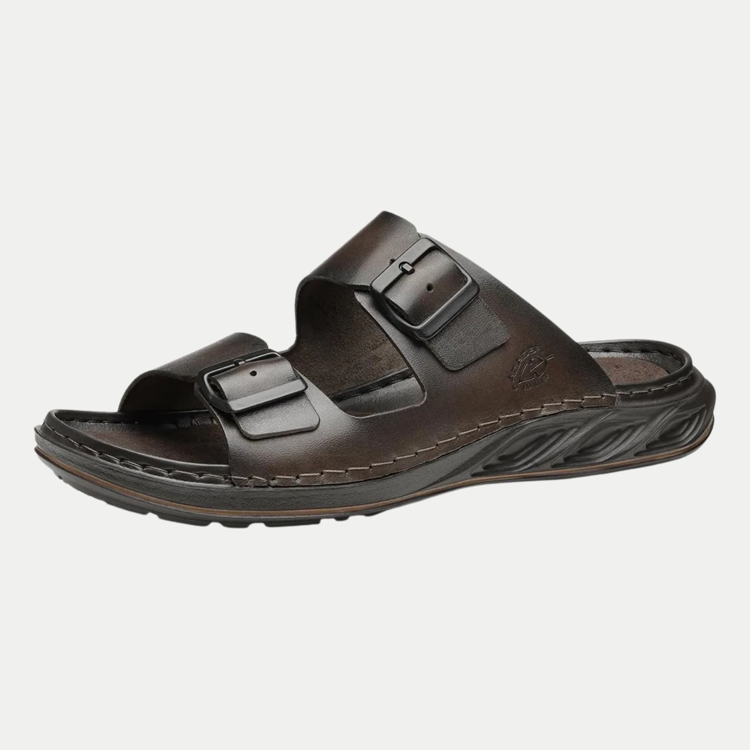 CHINELO PEGADA GASPEA COM 2 VELCRO COURO CRAVO MASCULINO ADULTO