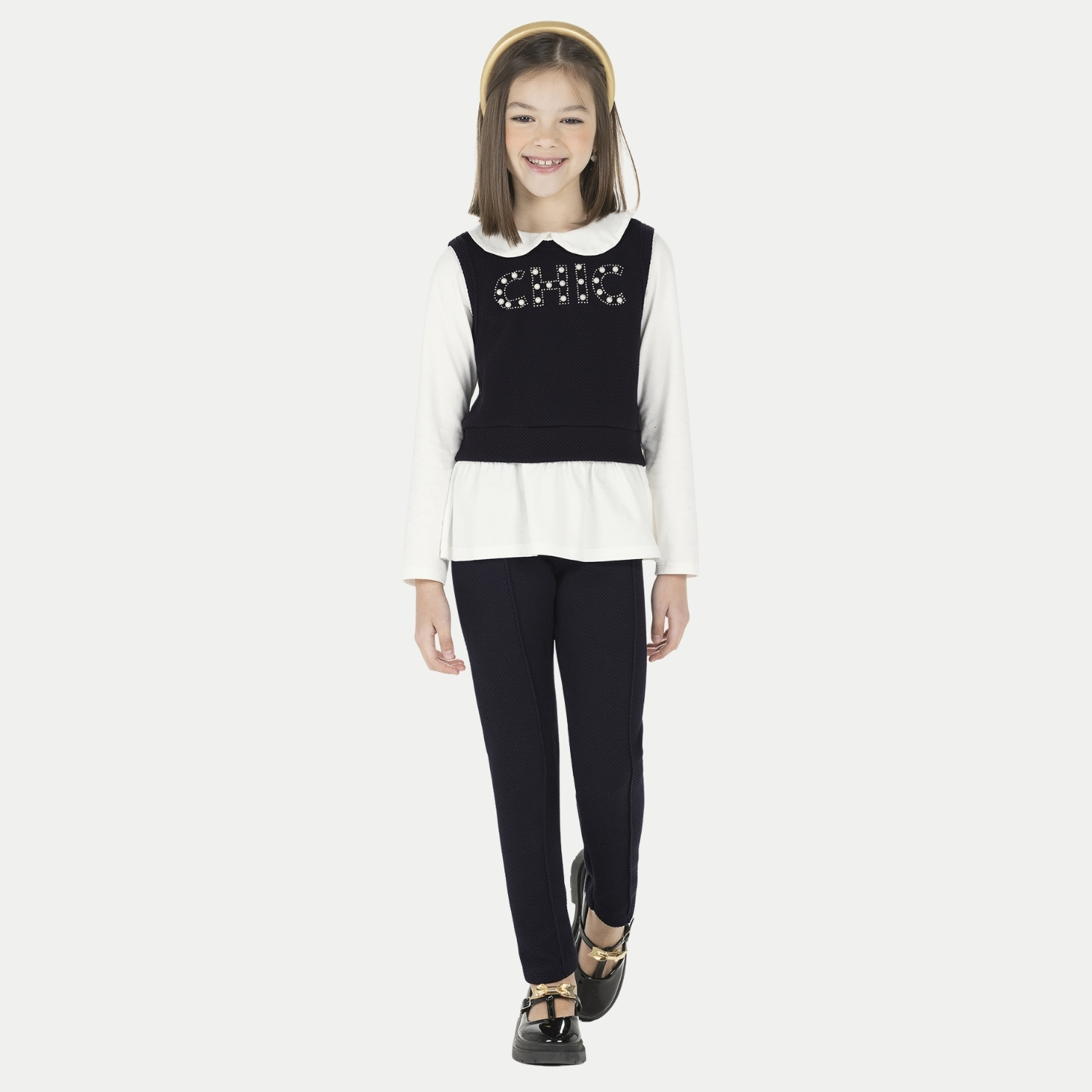 CONJUNTO INVERNO ALAKAZOO CALÇA E BLUSA MANGA LONGA E COLETE PRETO FEMININO INFANTIL