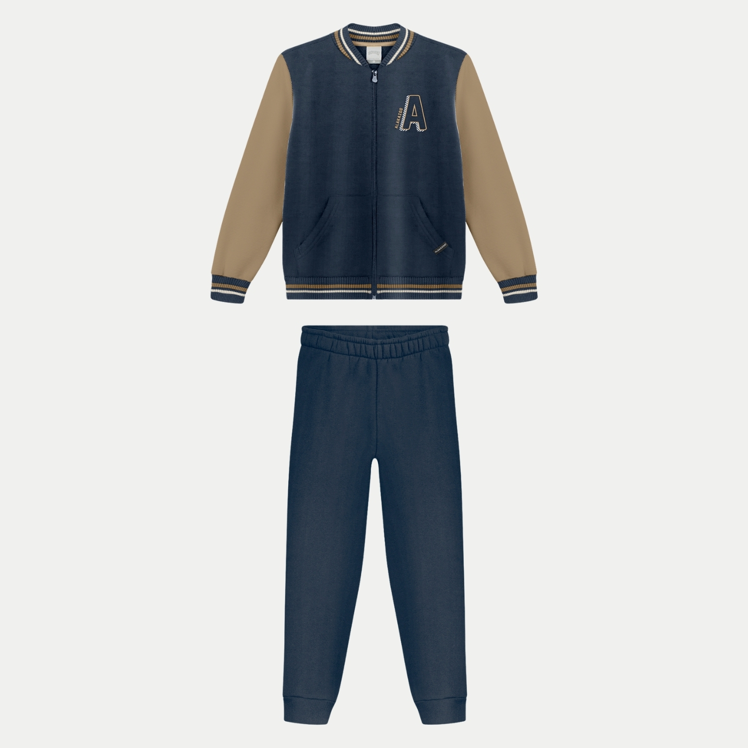 CONJUNTO INVERNO ALAKAZOO CALÇA E JAQUETA SEM CAPUZ MOLETOM AZUL MARINHO MASCULINO INFANTIL