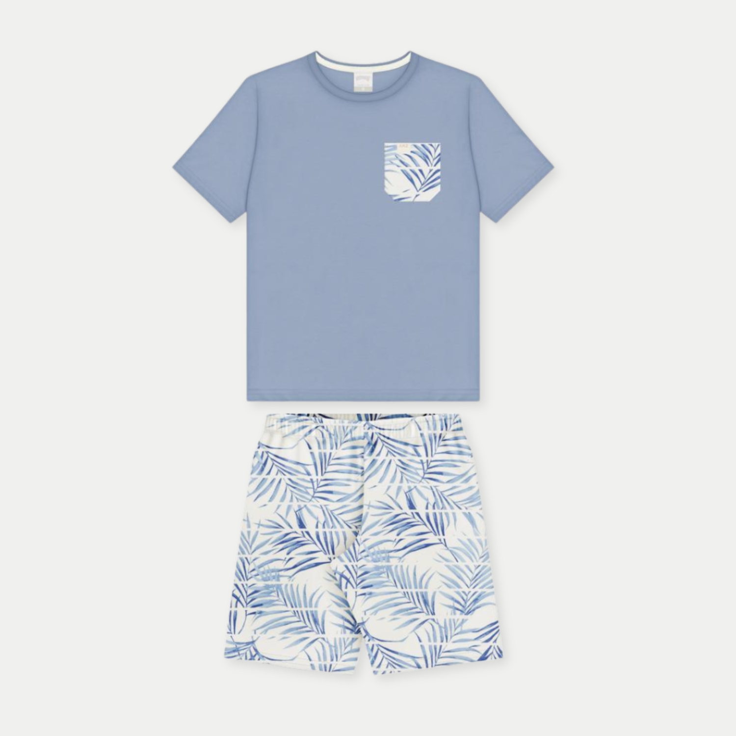 CONJUNTO VERÃO ALAKAZOO BERMUDA E CAMISETA MANGA CURTA AZUL DE MALHA MASCULINO INFANTIL
