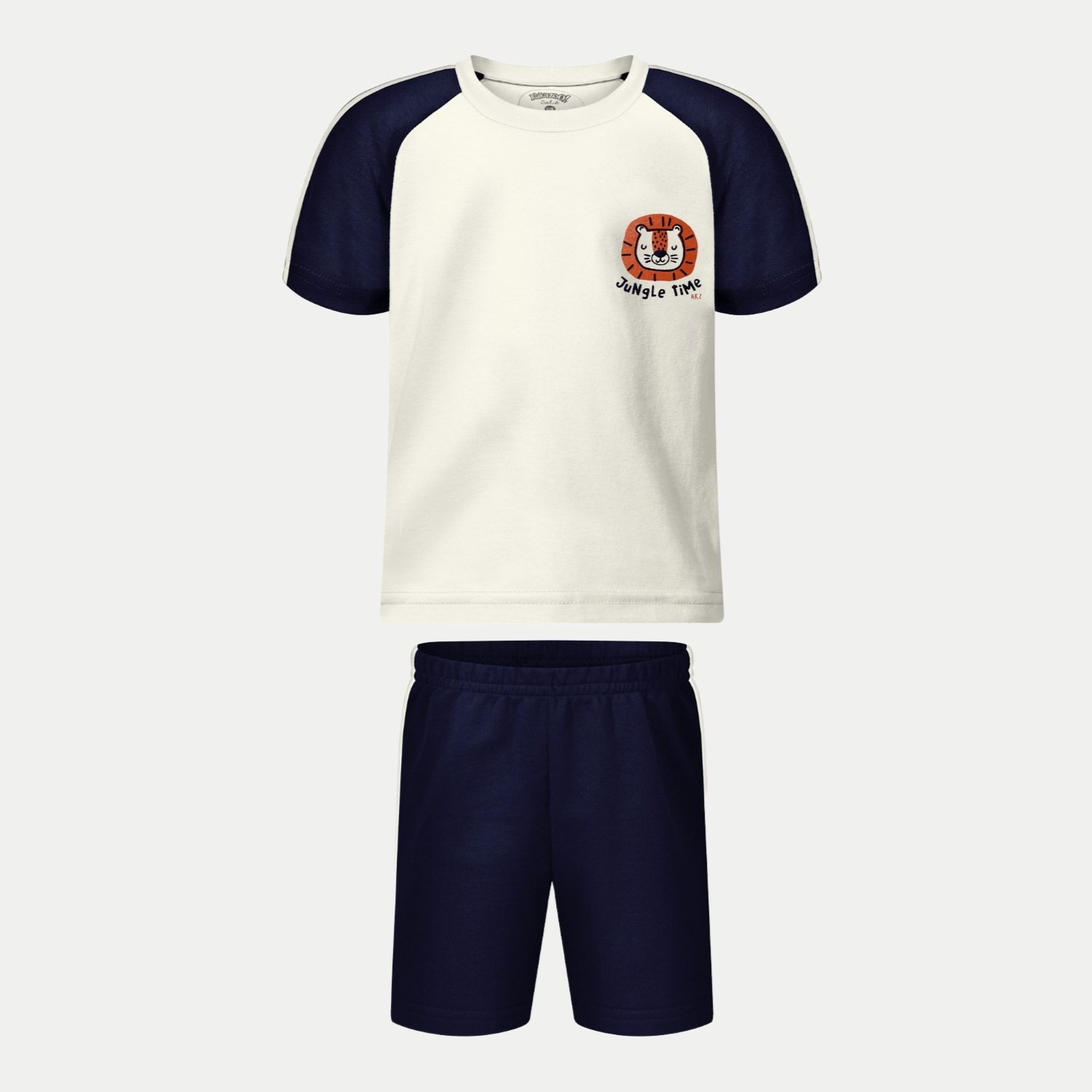 CONJUNTO VERÃO ALAKAZOO BERMUDA E CAMISETA MANGA CURTA OFFWHITE DE MALHA MASCULINO INFANTIL