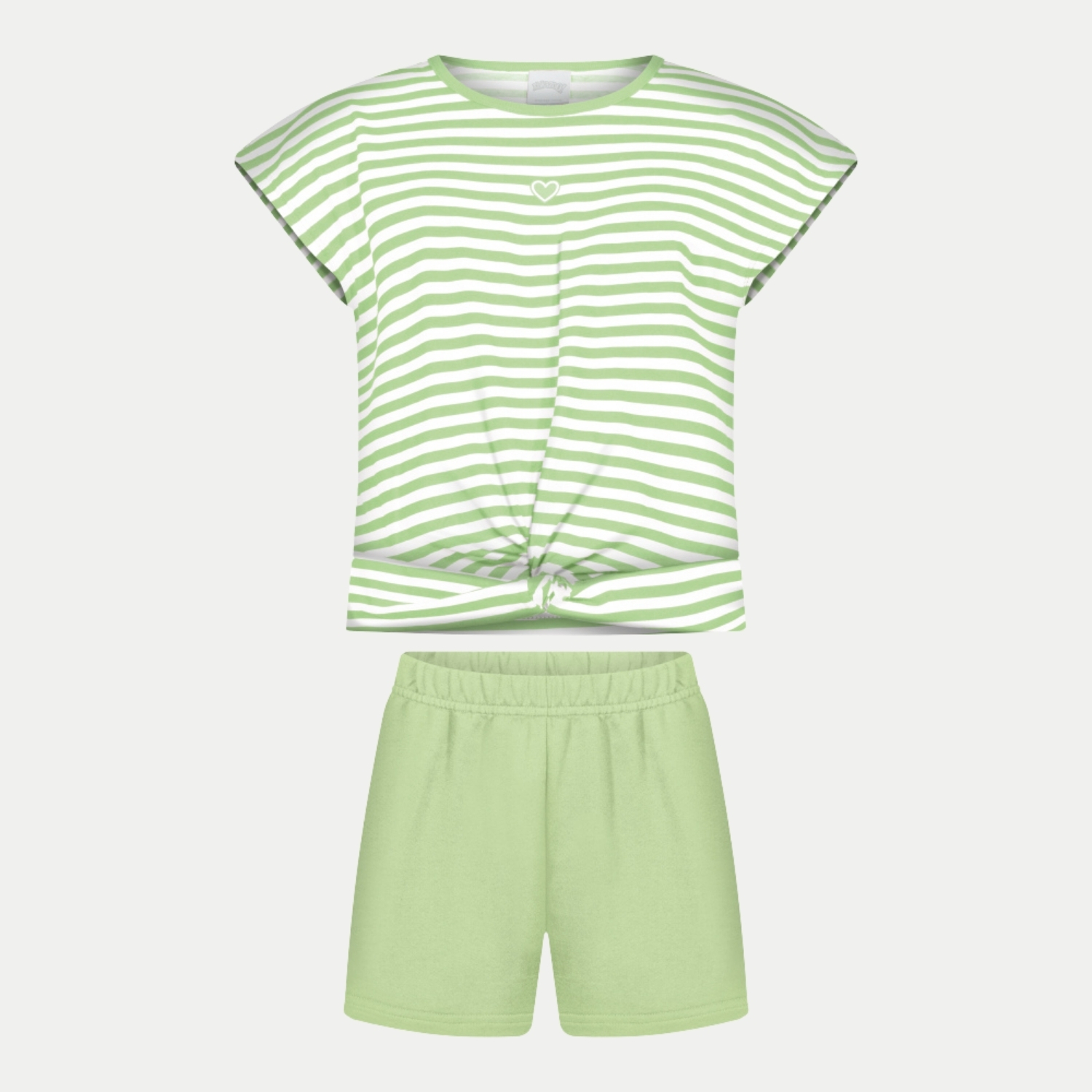 CONJUNTO VERÃO ALAKAZOO SHORT E BLUSA MANGA CURTA VERDE FEMININO INFANTIL