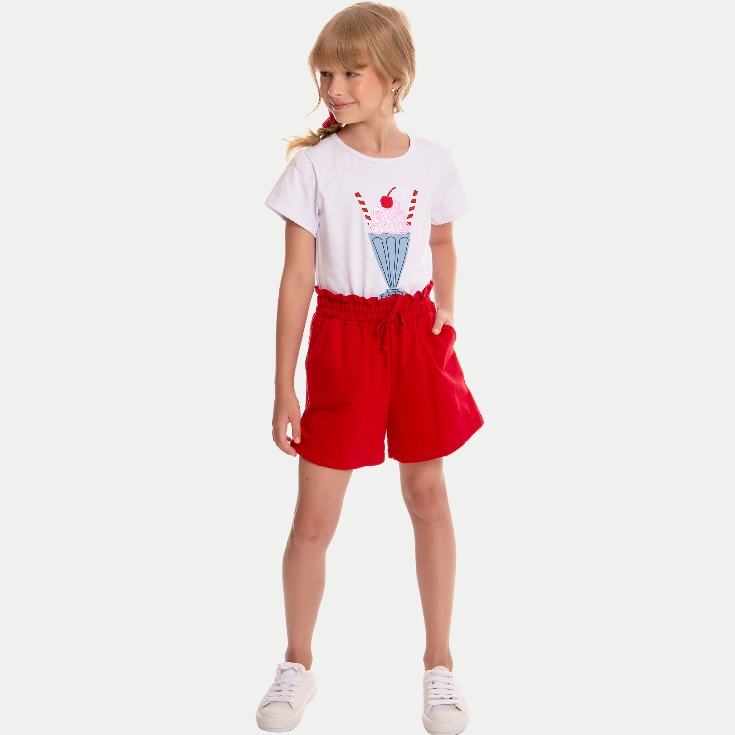 CONJUNTO VERÃO BY GUS SHORTE BLUSA MANGA CURTA BRANCO FEMININO INFANTIL