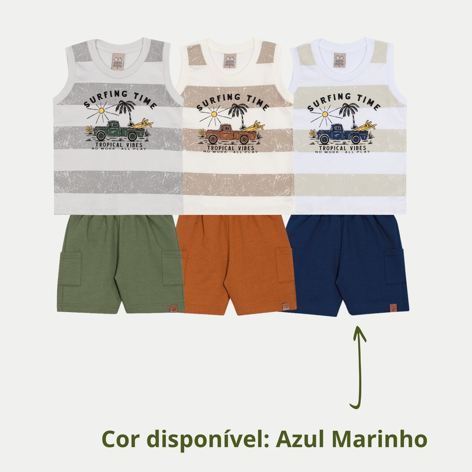 CONJUNTO VERÃO RANDA MUNDU BERMUDA E CAMISETA AZUL MARINHO MASCULINO INFANTIL