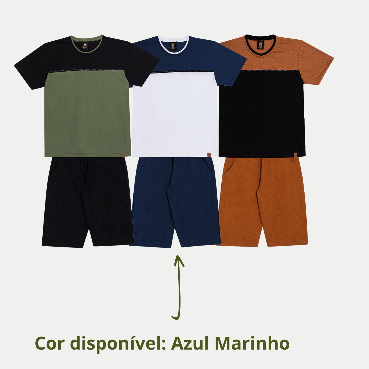 CONJUNTO VERÃO RANDA MUNDU BERMUDA E CAMISETA AZUL MARINHO MASCULINO INFANTIL