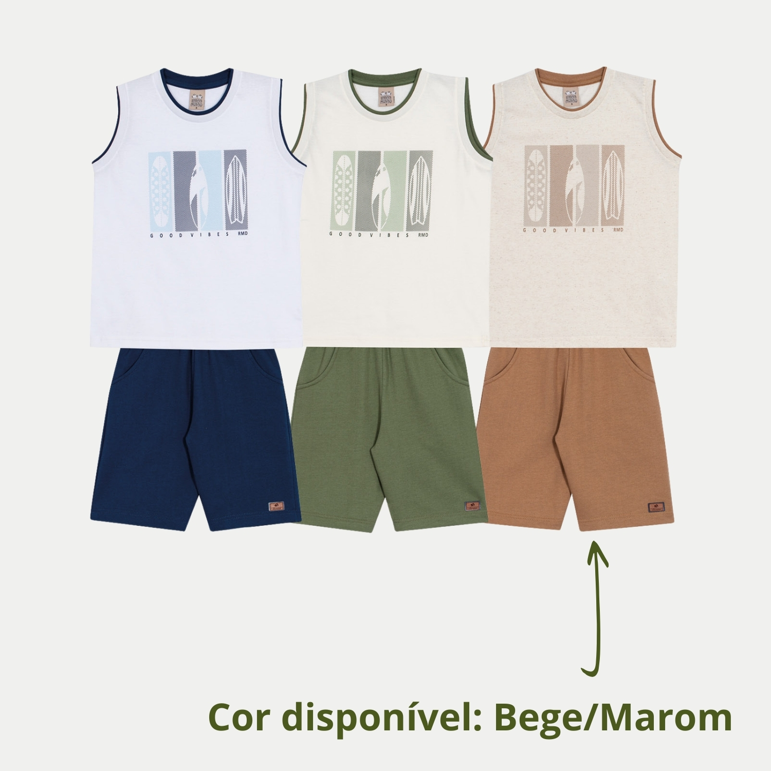 CONJUNTO VERÃO RANDA MUNDU BERMUDA E CAMISETA MARROM MASCULINO INFANTIL