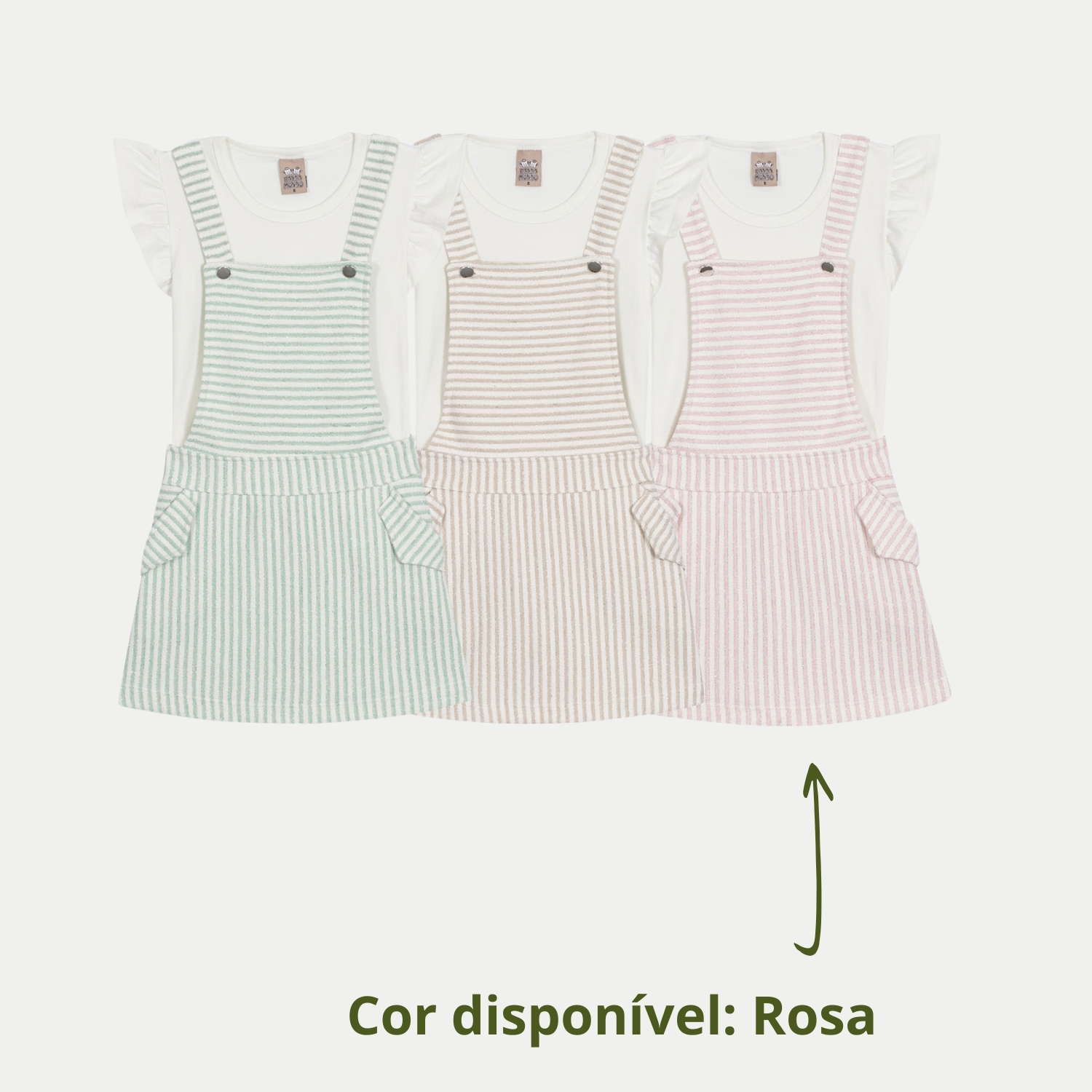 CONJUNTO VERÃO RANDA MUNDU SALOPETE E BLUSA BODY ROSA FEMININO INFANTIL