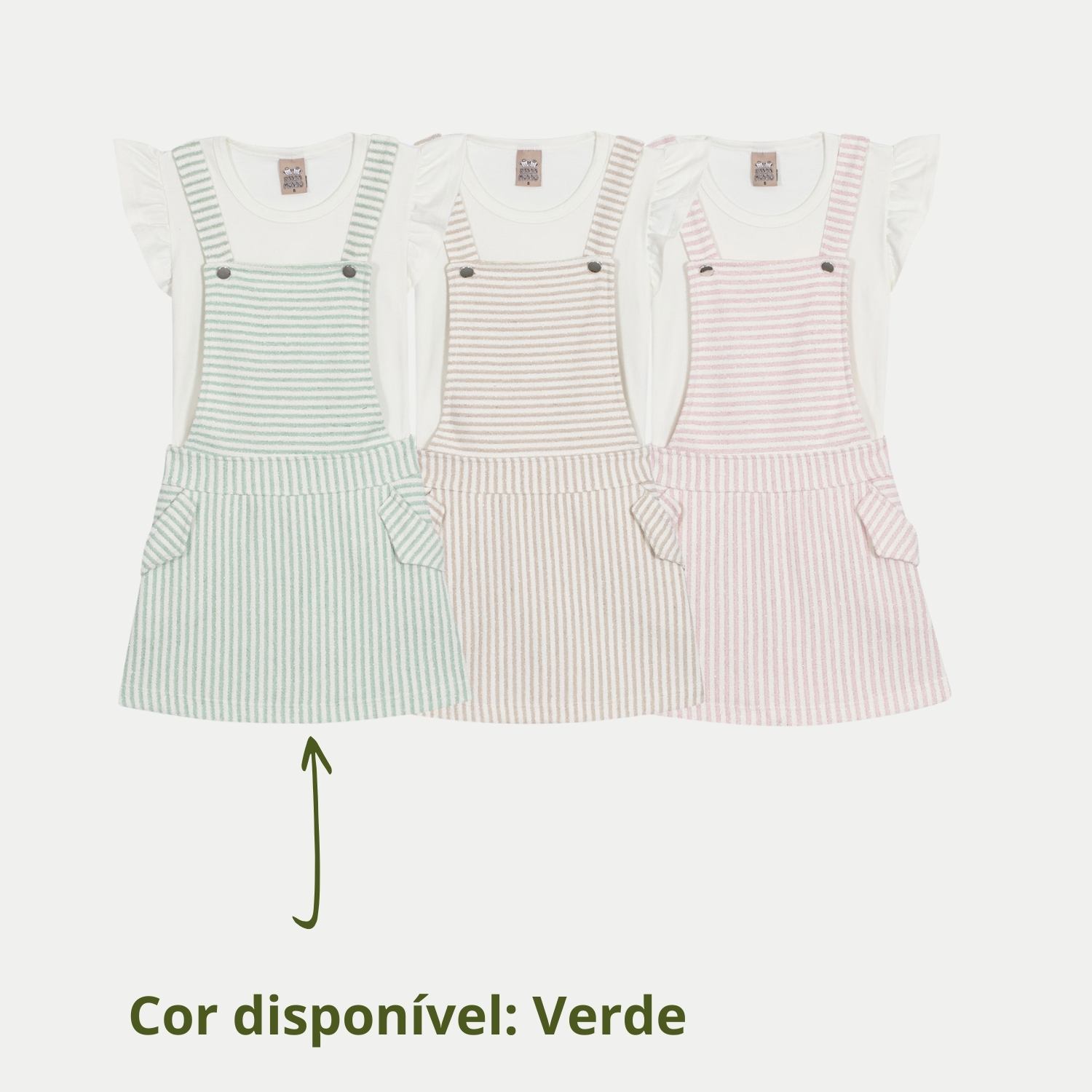 CONJUNTO VERÃO RANDA MUNDU SALOPETE E BLUSA BODY VERDE FEMININO INFANTIL