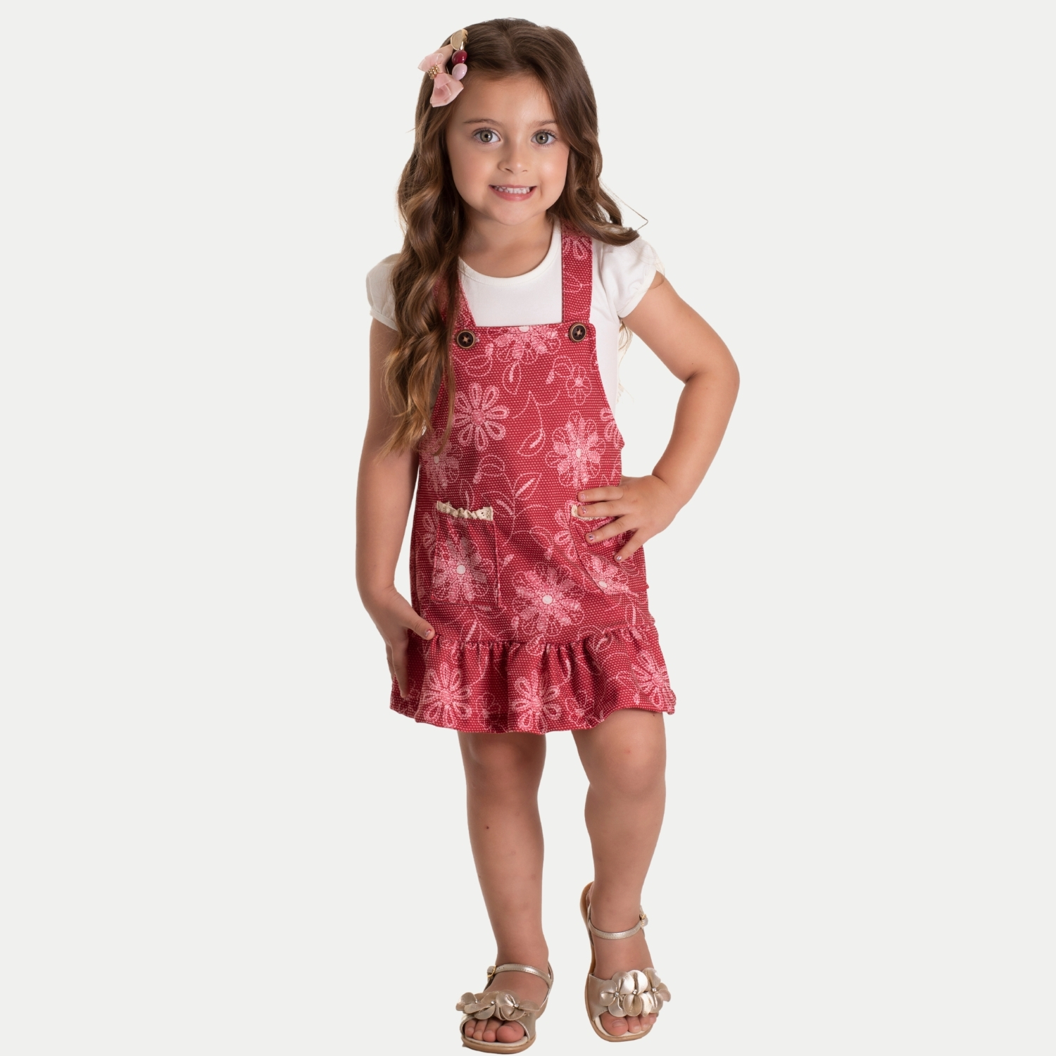 CONJUNTO VERÃO RANDA MUNDU SALOPETE E BLUSA MANGA CURTA VERMELHO FEMININO INFANTIL