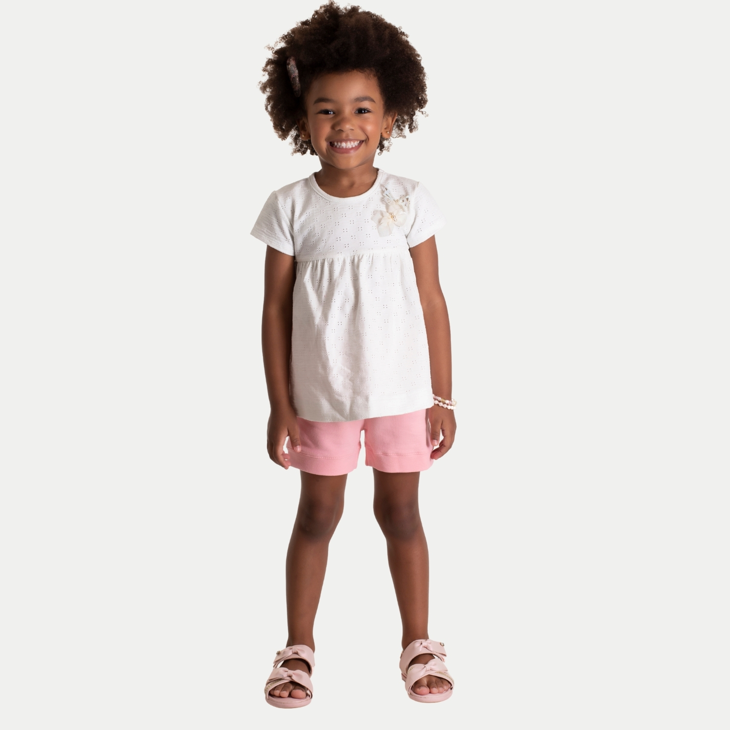 CONJUNTO VERÃO RANDA MUNDU SHORT E BLUSA MANGA CURTA ROSA FEMININO INFANTIL