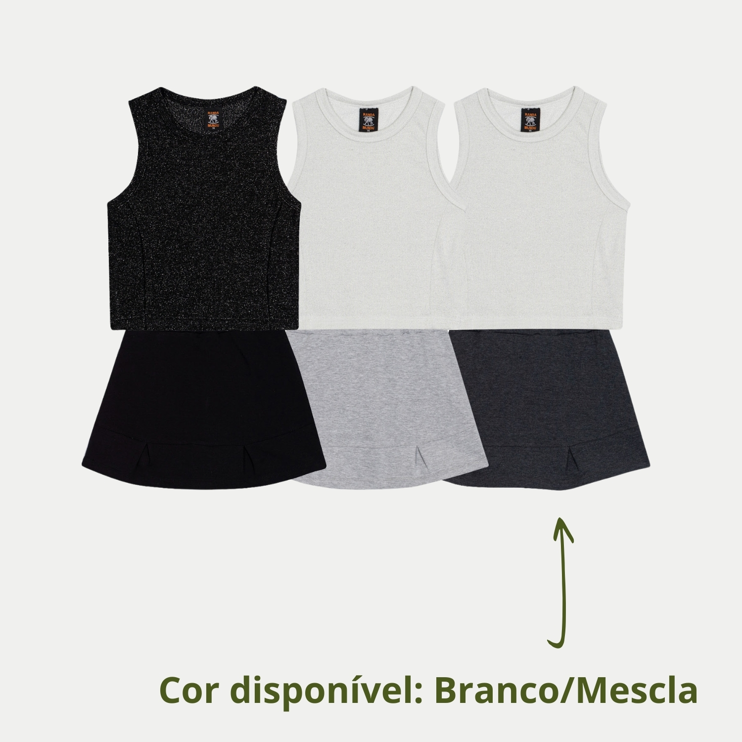 CONJUNTO VERÃO RANDA MUNDU SHORT SAIA COM BLUSA REGATA FEMININO INFANTIL