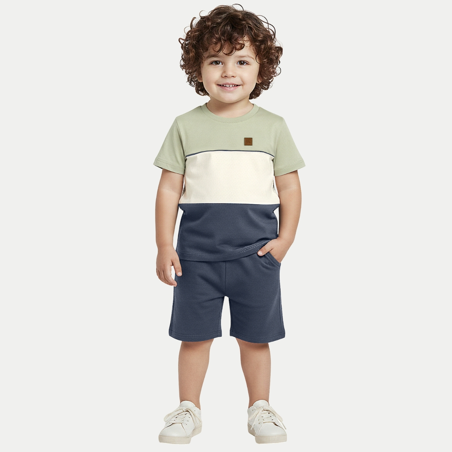 CONJUNTO VERÃO ALAKAZOO BERMUDA E CAMISETA MALHA VERDE MASCULINO INFANTIL