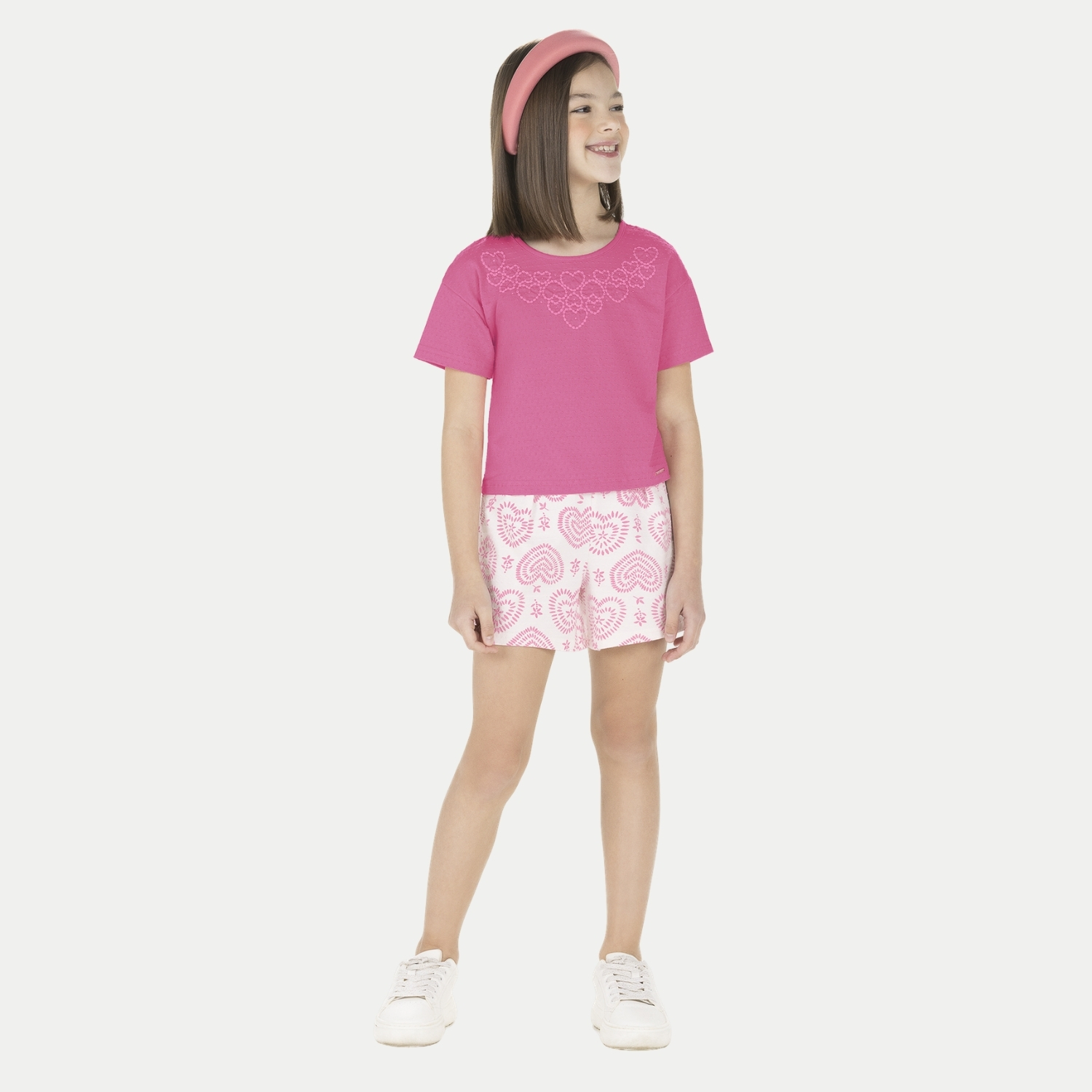 CONJUNTO VERÃO ALAKAZOO SHORT SAIA E BLUSA MALHA RISA FEMININO INFANTIL