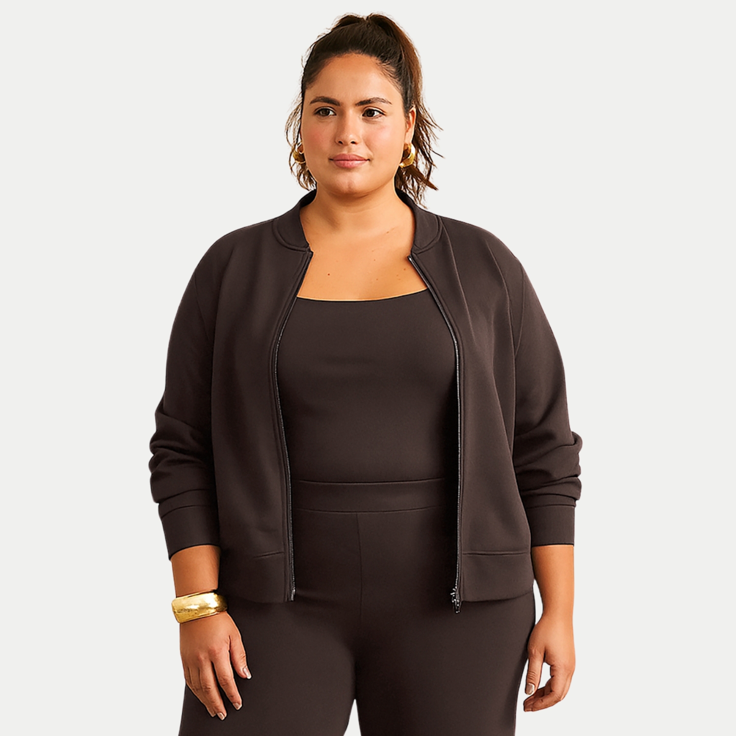 JAQUETA LUNENDER MAIS MULHER MOLETOM SEM CAPUZ MARROM FEMININO ADULTO