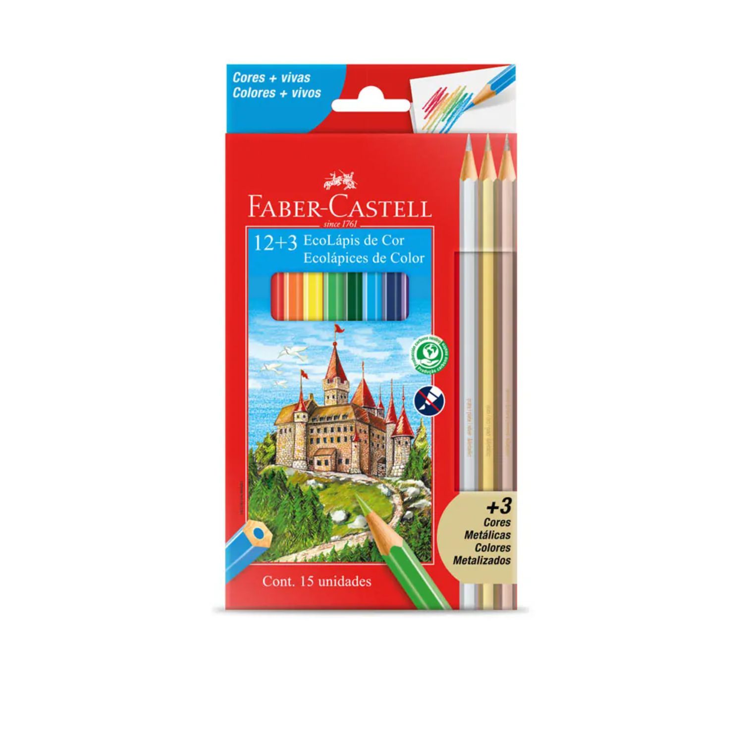 LÁPIS FABER COR CAIXA COM 12 + 3 METÁLICOS 120112 412-P