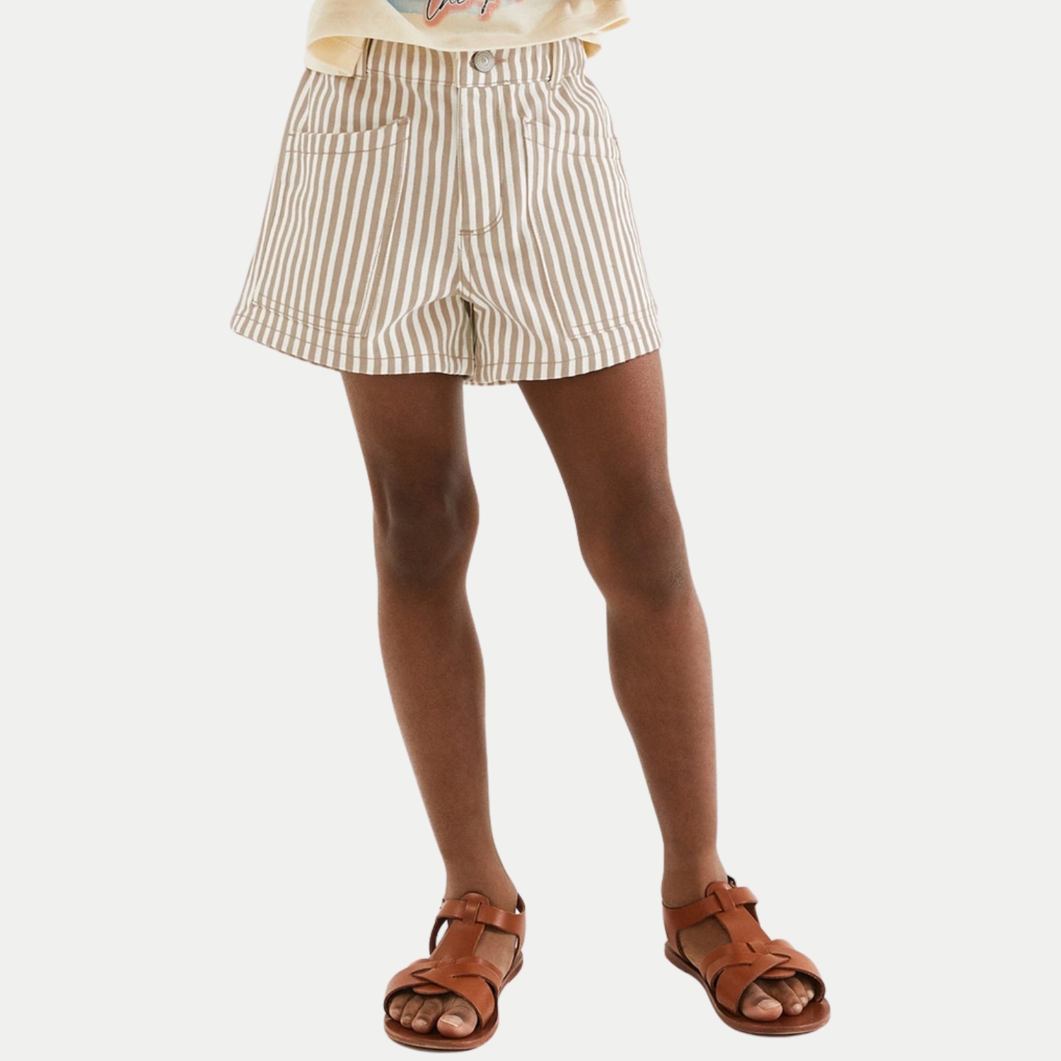 SHORT HERINGKIDS BRIM BRUTO BÁSIC LISTRADO BEGE FEMININA INFANTIL