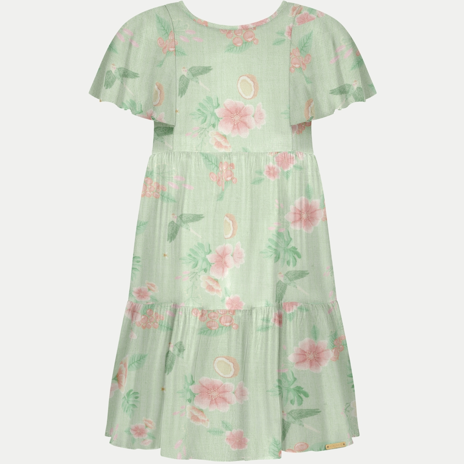 VESTIDO ALAKAZOO MANGA CURTA VISCOSE ESTAMPADA VERDE FEMININO INFANTIL